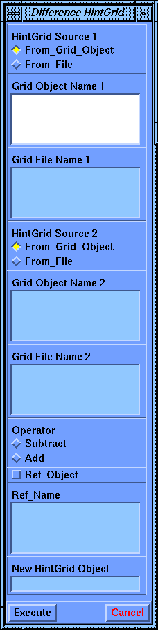 The New HintGrid Object is the identifying name to be assigned to the resulting grid from the Difference command.