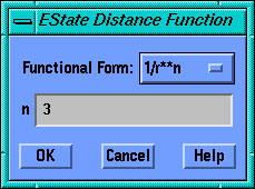 The Hydropathic Term of the Distance Function controls the mathematical form of the distance dependence for EState behavior. (See Theory Chapter for more information.) Off disables this effect; exp(-nr) uses an exponential decay function to represent the distance dependence; (1/r**n) uses an inverse power function to represent the distance dependence. The value of n is set in a separate parameter.
