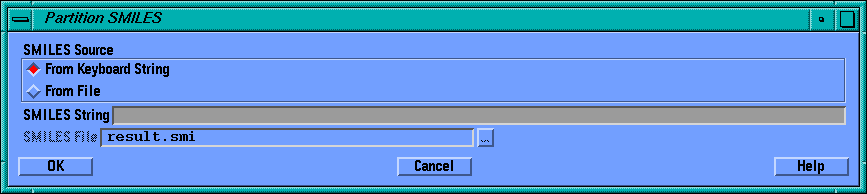 From Keyboard String means that the SMILES string will be read directly from keyboard entry.