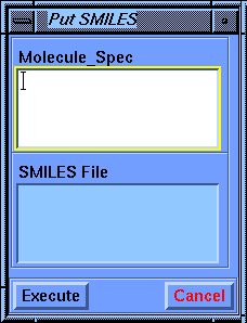 The SMILES File parameter designates the name of a disk file to write the generated SMILES string. Any valid unix file name can be used. Note, that if the name of a preexisting file is specified, this command will offer the option of a) appending the new SMILES string to that file or b) replacing that file with a new one containing only the new SMILES string.