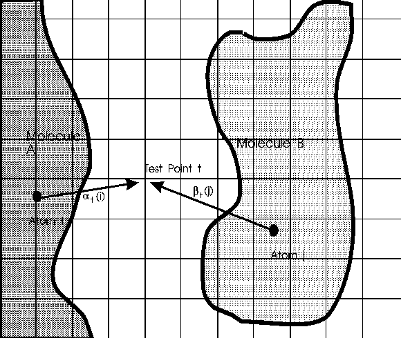 where and are atom-test point interactions for atoms i and j, respectively, and Ct is the interaction grid point value.