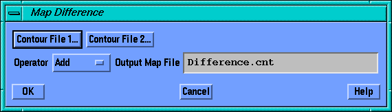 Use this parameter to identify the second Contour File for the command. The Map Difference command subtracts (or adds) the second contour file from (or to) the first. The resulting file will have the same grid spacing and dimensions as Contour File 1. Thus, regions existing in Contour File 2 but not in Contour File 1 will not be represented in the Difference map.