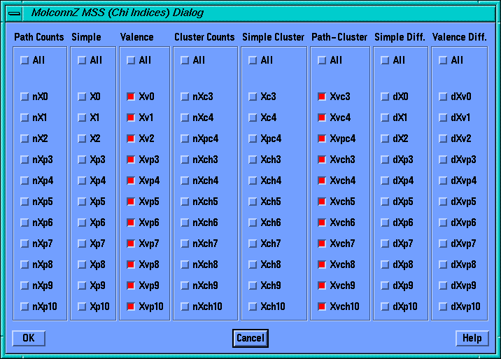 View MolconnZ MSS (Chi Indices) Dialog Box