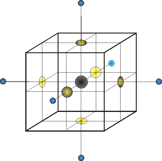 The yellow spots, on the surface of the cube surrounding grid point