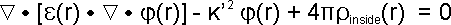 Substituting eqn. 7 into the Poisson equation (eqn. 5) gives the linear form of the Poisson-Boltzmann equation: